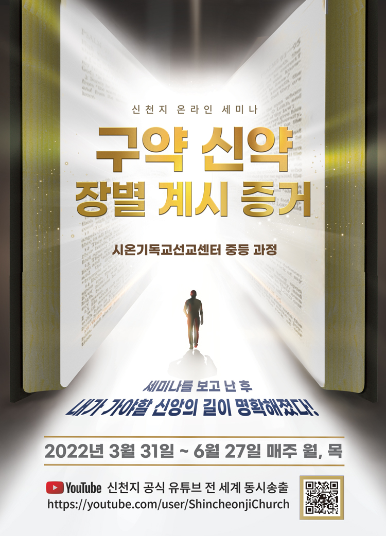 “직접 보고 들은 신‧구약의 예언과 성취 확인해보라” -이만희 총회장 23일 성경 전반 온라인 공개 세미나 … 20여 일만에 잇단 말씀 증거 -예언 이뤄진 실상 계시록 전장 해설로 증거… “목회자들 올바른 판단 해달라” 신천지예수교 증거장막성전(이하 신천지예수교회)의 이만희 총회장이 요한계시록의 예언이 성취돼 실상으로 이뤄졌음을 강조하고 이를 현장에서 직접 본 증인의 증언을 확인하고 믿어줄 것을 또 한 번 호소했다. 이 총회장은 23일 신천지예수교회 공식 유튜브를 통해 진행한 ‘신·구약의 예언과 성취’ 제목의 공개 세미나를 통해 계시록 전장을 장별로 해석하며 그 실상을 증거했다. 신천지예수교회가 지난해부터 공개한 초·중·고등 과정의 말씀 세미나를 총정리하는 강의를 지난 7월 4일 진행한 이 총회장은 20..