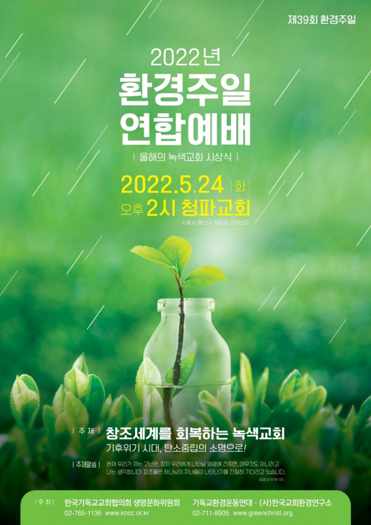 기독교계, 내달 5일 ‘환경의 날’ 동참 움직임… “모든 피조물의 집 지구 지키자” 담화 발표, 녹색교회 선정 [천지일보=김민희 기자] 매년 6월 5일은 국제사회가 지구환경보전을 위해 공동 노력을 다짐하며 제정한 ‘환경의 날’이다. 환경의 날을 앞두고 기독교계에서는 환경을 생각하는 목소리와 움직임이 나오고 있다. 한국천주교주교회의 생태환경위원회 박현동 위원장은 ‘인간의 자리는 어디입니까?’라는 제목의 2022년 환경의 날 담화를 17일 발표했다. 박 위원장은 “사랑으로 창조된 모든 피조물은 저마다 존재 그 자체로 소중하고 있어야 할 제자리가 있다”며 “인간의 자리는 창조 질서를 회복·보전하는 자리일 것”이라고 말했다. 이어 “신종 코로나바이러스 감염증(코로나19)의 대유행으로 사회적 거리두기를 하면서 지..